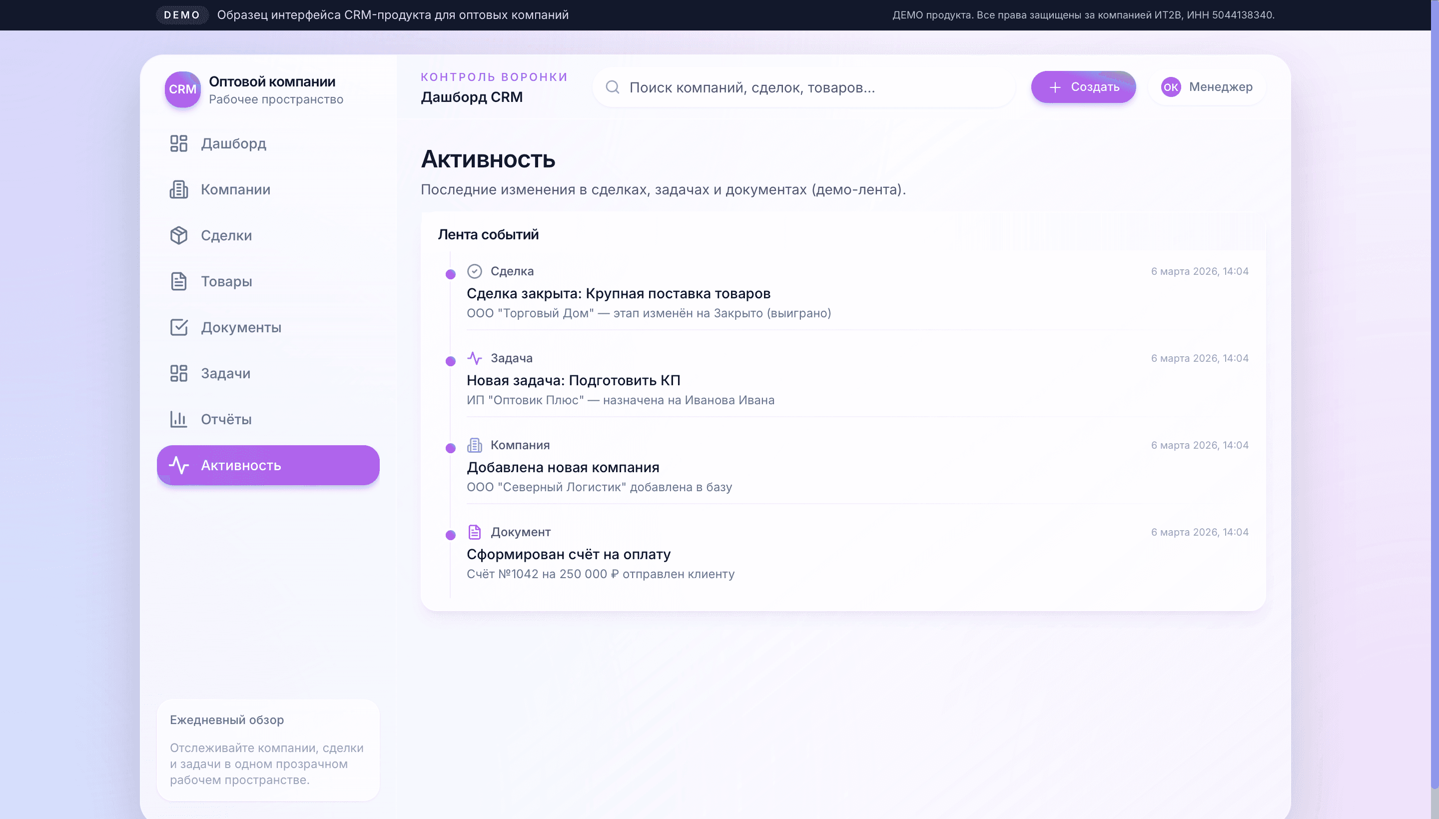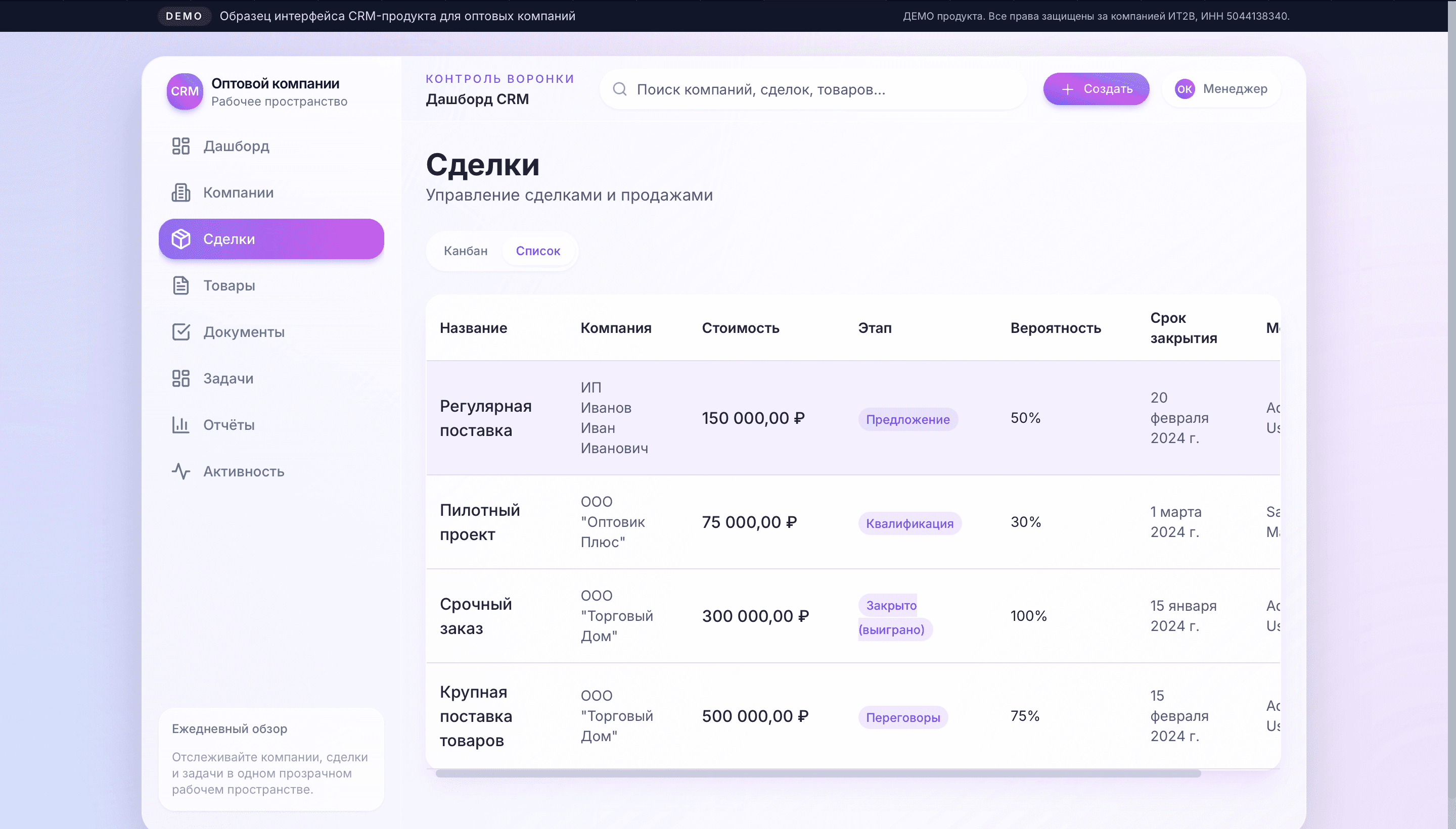 Внедрение CRM для оптовой компании